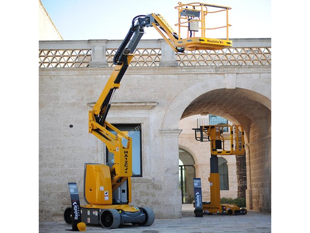 Haulotte HA 12 CJ+ knuckle boom lift for sale providing a platform working height of 11.68 m with a horizontal reach of 7.22 m and a platform capacity of 200 kg.