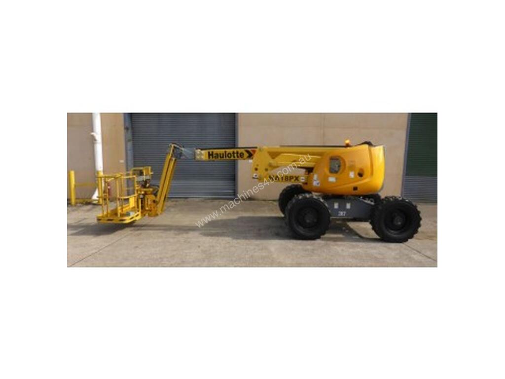 Haulotte HA 18 PX knuckle boom lift for hire providing a platform working height....