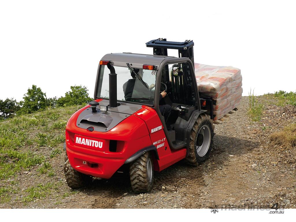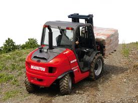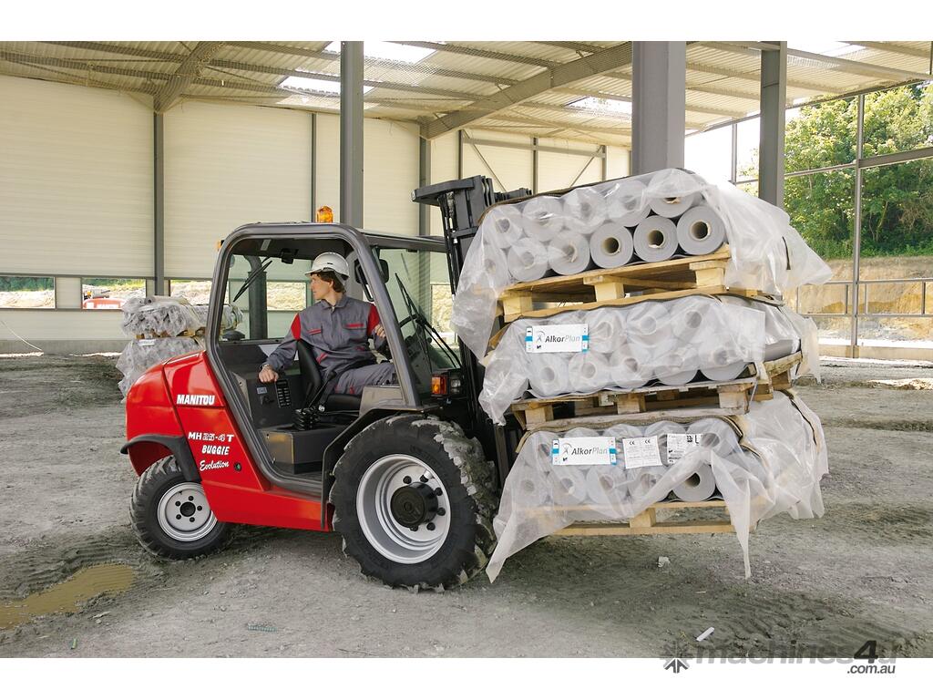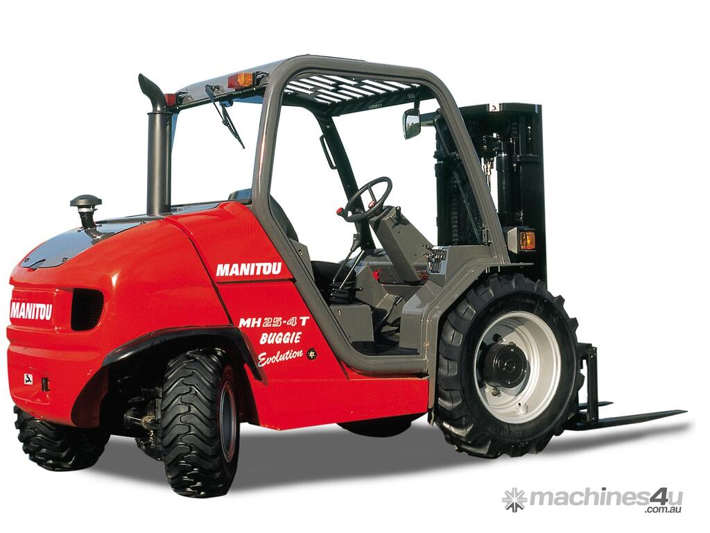 This diesel powered Manitou rough terrain forklift features 4 wheel drive rough terrain capability. With an overall height of 1.99 metres, a width of 1.45 meters weighing in at 4350 kilograms. The Manitou MH 25-4T rough terrain forklift features a Kubota 44 kw diesel engine capable of travelling up to speeds of 14 km/h. Capable of lifting 2500 kg, this rough terrain forklift suits the Agriculture, Construction, Defence, Events, Heavy Industry, Landscaping, Materials Handling, Mining, Transportation industries.